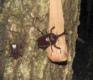 雑木林の自然とカブトムシの飼い方* カブトムシは雑木林の王様 威張っているばかりでなく、お掃除が得意 * カブトムシの食べ物は甘い樹液 * カブトムシの捕まえ方 昼間は落ち葉の下などに隠れて眠っているよ、夜になると出てくる * バナナとラップでカブトムシを集める * オス一匹にメス1〜2匹を飼育箱で飼い、卵を産ませよう * カブトムシは8月中に卵を産み死んでしまう * 9月下旬には卵から帰って幼虫になる * 幼虫のえさは * 飼育箱はどんなものが良い * 幼虫の世話の仕方 * 6月にはさなぎになって、7月の中旬にはカブトムシになる