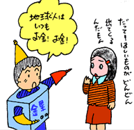 最初のメールは“ごみかん環境劇団 『ビジョン座』 デビュー公演 ”のシナリオが欲しいとのことでした。この講演は大まかな筋書きはあるのですが、出演者が自分にあった台詞を作り演じ、かつ会場の反応を見ながら変えていく方法を採用していたので参考になりませんでした。毎日1往復のメールで打ち合わせを進めましたが、時間が掛かることが分かりました。 先生からの要請で4クラスの子供達全員と4人の担任の先生に集まっていただき、絵本に書かれているコンセプトをお話しすることにしました。校長先生も一緒に聞いて頂きました。