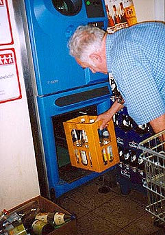 買うときに上乗せされたびん代は、空びんの返却コーナーに返すと戻ってくる仕組み。