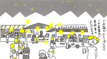 何よりおどろいたのは お祭り会場のごみ箱が、からっぽだったっていうこと。 食べ残しと紙ナプキンは堆肥にするので分けているし ごみになる使い捨ての食器をいっさい使っていないからなのよ。 陶器のお皿やガラスのコツプでおいしく食べたり飲んだりしたあとは 洗い場のある車のところに持っていくと 容器代を返してくれるしくみ。 「お祭りに使い捨て食器を使ってはいけない」という 町の決まり(条例)があるんだって。