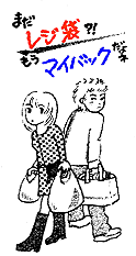 さて市内の繁華街である吉祥寺は、デパートから屋台まで大小の商店が所狭しと建ち並び、ここが三多摩?と首を傾げたくなるほどです。 ごみ減らしに奔走する市民さえ、そのたくましい商魂に圧倒されます。多過ぎる商店を相手に何かできないかと考えた挙句、目をつけたのは「レジ袋」。ちょうど容リ法でのプラ回収が計画された4月頃のことでした。