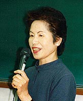 ごみかんの交流会で 発表する白石さん |