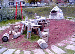 学校それでれの要望を取り入れ、学校内での調整を行い、改造計画を提案し、財政的時間的な事柄についてアドバイスを行います。 パン焼き窯がある中庭 |