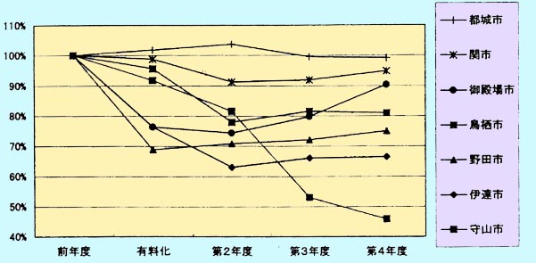そのころ、焼却施設の建設と維持管理のための財源確保に苦慮した北海道伊達市が、有料化に踏み切って2年後「3割減った」というセンセーショナルな発表を行ったことから、全国の市町村で「減量」と「財源確保」を目的とする有料化の機運が高まりました。1992年6月には、全国市長会も、有料化の推進を提言。厚生省の調査によれば、同年10月時点で、従量制の有料化を実施している自治体は636市町村(19%)にものぼっています。ただし、実施しているのは人口規模が小さい自治体が多く、人口10万人以上の市では実施されていませんでした。