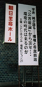 折りしも国政選挙の真っ只中にあって、今やどの政党も″脱官僚支配″を口にしなければ無党派層(本当はそんなものは存在しないのだが)の支持を得られないという状況が出現したかに見える。 時間が来ても、宇井さんが言い足りなさそうにしていたことの一つは、演題の「環境と市民自治」に込められたメッセージ、つまり″あなた方の本当の出番はこれからなのだよ″ということではなかったろうかと、ひそかに想い続けている。 この日の宇井純さんの講演は、講演録としてまとめました。 |