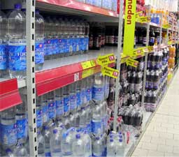 2003年の導入により、大手スーパーでは独自のプラスチック容器を開発し、ミネラルウォーターやソーダを販売、回収。 リユース瓶より軽く、独自ブランド商品のため値段が安いとあって、瞬く間に広がった。