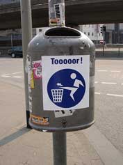 5月より街角のゴミ箱には「ゴール!」とかかれたシールが張られました。ゴミ箱の手前11mには「11m」のシール。 ゴール付近で反則をした場合、11m手前から再キックとなるPK戦をドイツではそのままに「11m」とよぶためです。