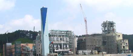 セメントの原料の8割は石灰石で、粘土、珪石、鉄原料が加わる。これらを適正に混ぜ、粉砕して1,450℃の高温で焼成して中間製品の セメントクリンカーができる。 コンクリートとして固まる速さを調整するために石膏を加え粉砕するとセメントが完成する。 セメント製造には多量の廃棄物を活用している。 その理由は、セメントの原料である石灰石・粘土・珪石などと、焼却灰や汚泥などの成分が類似しているので代替が可能であり、セメントは石炭を主燃料として高温で焼成されるため、廃タイヤ、廃油、廃プラスチックなどの可燃性廃棄物を燃料として利用できるからである。
