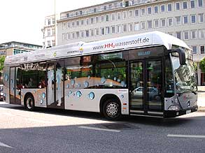 ハンブルクには水素で動くバスが走っています。市内を縦断し、市民の足として活躍しています。 これは欧州委員会の水素プロジェクトとして2003年に始まったもの。 ロンドンやマドリッド、シュツットガルトなどヨーロッパの9都市で実施されています。 ハンブルクは当時3台のバスで始まりましたが、 現在は9台。ダイムラークライスラーが開発した、同プロジェクト専用のバスです。