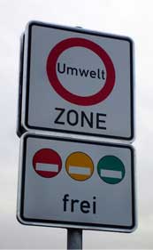 2008年1月1日より、ベルリン、ケルン、ハノーファーの各市が市内中心部を環境ゾーンとし、車両排気ガスの規制を始めた。 高濃度の排気ガスを出すディーゼル車やトラックを締め出すのが目的で、ゾーン内に進入するには濃度基準をみたしていることを証明する浮遊粒子状物質ステッカーをフロントガラスに貼っていなければいけない。