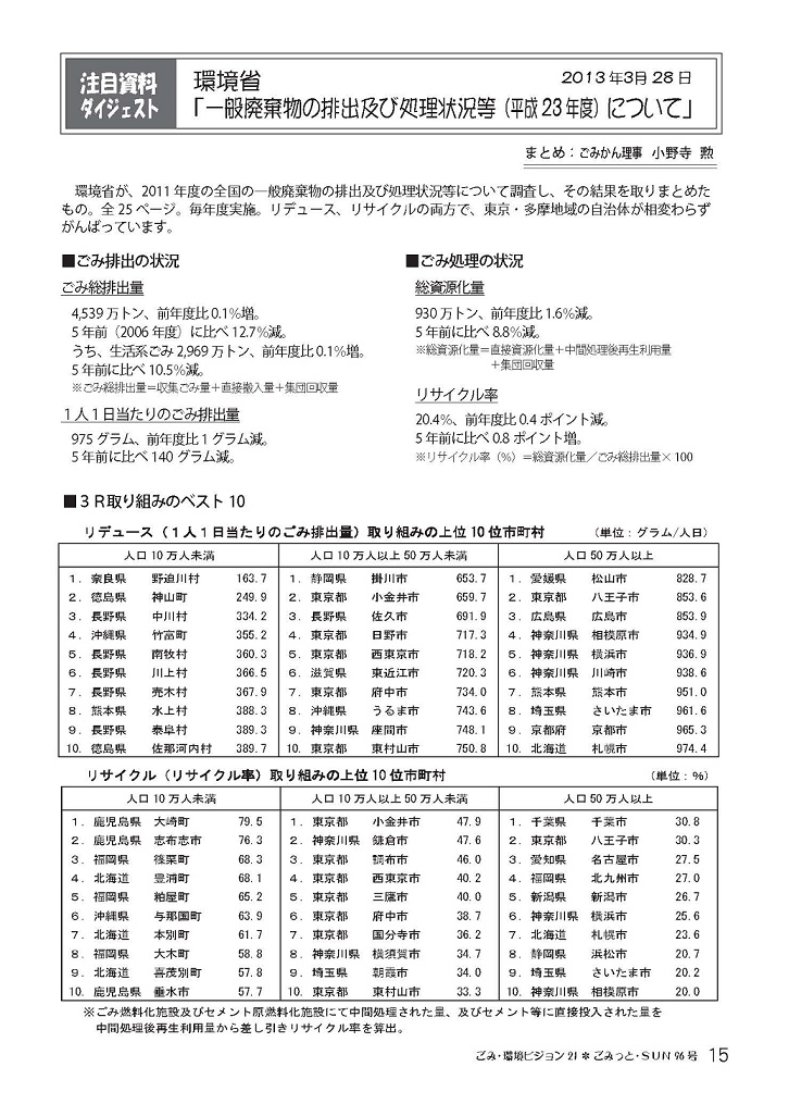 「一般廃棄物の排出及び処理状況等(平成23年度)について」